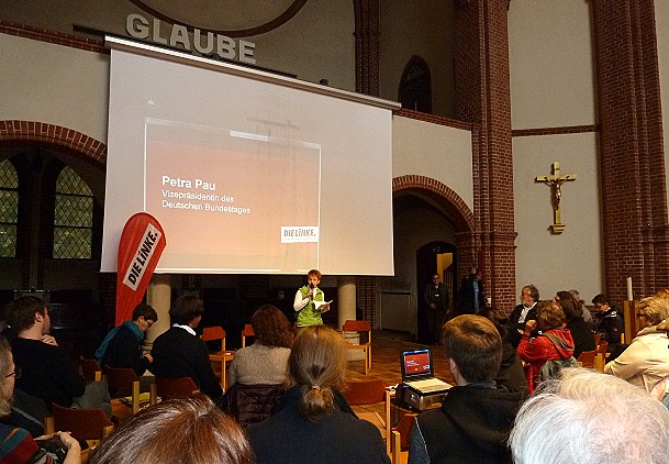 In Marzahn-Hellersdorf besuchte Petra Pau heute den Adventsmarkt in der Kran- kenhauskirche im Wuhletal. Vordem war sie beim Bundestreffen des Forum Demo- kratischer Sozialismus (fds) der Partei DIE LINKE in den Räumen der Traum- tänzer. Es wurden Delegierte für den Bundesparteitag gewählt und die mangelnde Strategie der LINKEN kritisch debattiert.