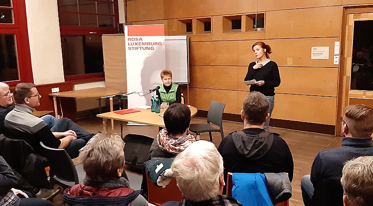 21. 11. 2019, Mecklenburg-Vorpommern, Rostock: Die Rosa-Luxemburg-Stiftung hatte heute zu Vortrag und Diskussion mit Petra Pau über Links sein im 21. Jahrhundert geladen. Bevor sie über möglicherweise neue Optionen dank Solarwende und Digitalisierung sprach, erklärte sie, warum die DDR, überhaupt der Sozialismus sowjetischer Prägung aus ihrer Sicht gescheitert ist.