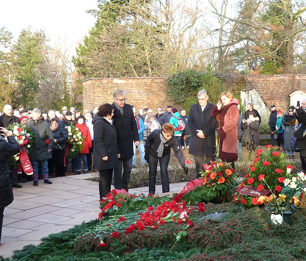 Auf dem Friedhof der Sozialisten in Friedrichsfelde wurde heute wieder der 1919 ermordeten Rosa Luxemburg und Karl Liebknecht gedacht. Danach war Petra Pau beim Tag der offenen Tür im Jüdischen Gymnasium und beim Auschwitz- Komitee. Schließlich wirkte sie am Jahresauftakt der Fraktion DIE LINKE mit. (⇒ zum Beitrag)