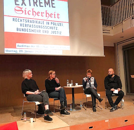 Petra Pau und ihr erweitertes Team klausurten heute. Vor allem ging es um Schwerpunkte der Arbeit im Bundestag und im Wahlkreis, sowie um die Vorbe- reitung der nächsten Wahlen. Danach stellte sie in der Alice-Salomon-Hoch- schule mit der Co-Autorin Heike Kleffner und der Journalistin Malene Gürgen (taz) das Buch Extreme Sicherheit vor.