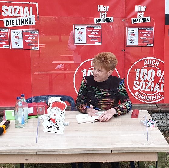 Mangelns öffentlicher Lesungen mit ihrem Buch Gottlose Type - meine unfrisierten Erinnerungen bietet Petra Pau seit einigen Monaten Anekdoten daraus digital an, heute Führungsspieler. Darin geht es um eine Frage der BILD-Zeitung, um Fußballspieler sowie um Führungsqualitäten, alles vor dem Hintergrund anhaltender Ost-West-Differenzen. (⇒ Video / ⇒ Audio).