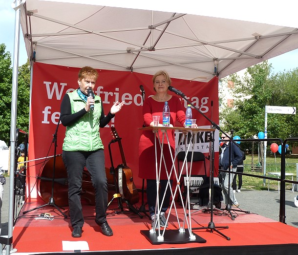 Im Vorfeld des Weltfriedenstages am 1. September bot die DIE LINKE im Bundestag heute in Hohenschönhausen wieder ein Friedensfest an. Aus der Fraktion waren Gesine Lötzsch, Petra Pau und Jan Korte dabei. Petra Pau unterstrich in ihrem Beitrag, dass auch in Coronazeiten Bürgerrechte gelten müssen, dazu gehört das Demonstrationsrecht.