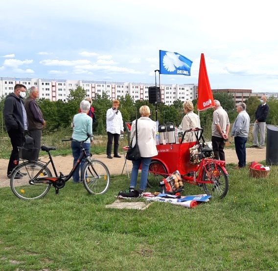 DIE LINKE Altenburger Land hatte für heute Petra Pau eingeladen. Erst besuchten sie das Projekt Stadtmensch. Dann beging der Kreisverband 30 Jahre PDS/DIE LINKE. Petra Pau sprach dazu. Sie erinnerte an die bürgerrechtliche Revolution in der DDR 1989/90, an den viel zitierten Runden Tisch und an negierte Chancen im Zuge der Einheit. (⇒ zur Rede)