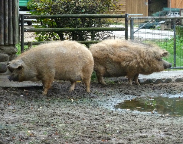 Kürzlich starb das Patenschwein von Petra Pau beim Geschlechtsverkehr. Es war ein Mangalitza. Heute trafen sich Petra Pau und ihre Kollegin Kirsten Tackmann im Tierpark Kunsterspring. Sie wollte wissen, ob sich ein neues Patentier anbietet. Zwei Schweine sind tragend, es dauert also noch. Dafür gab es einen Rundgang mit Direktor Mancke.