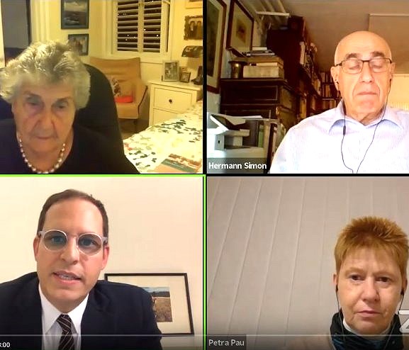 Brennende Synagogen und Mauerfall. Was wird dem 9. November gerecht? Darüber diskutierten heute im Erinnerungssalon der Claims Conference die Holocaustüberlebende Regina Steinitz, Dr. Hermann Simon und Petra Pau. (⇒ Video) Vorher nahm Petra Pau ebenfalls virtuell an den Gremiensitzungen der Linksfraktion und an einem Symposium Ein Jahr nach Halle teil.