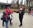 Erneut war Petra Pau heute mit dem DRK, Bezirksverband Nord-Ost, auf dem Helene-Weigel-Platz. Petra Pau ist offiziell Botschafterin des Verbandes. Diesmal verteilten sie heiße Suppe und Osterpräsente an ca. 800 bedürftige Bürgerinnen und Bürger. Überraschend wurde die Solidaritätsaktion von Andrej Hermlin und seinem Sohn begleitet.