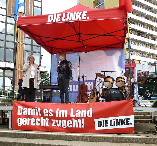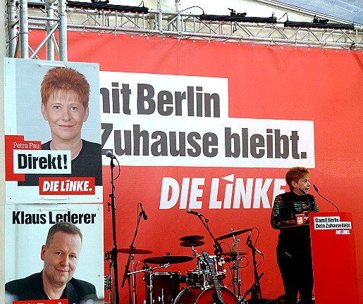 Mit einer Kundgebung auf dem Helene-Weigel-Platz eröffnete die örtliche LINKE heute den Endspurt im Wahlkampf. Mit dabei waren die Berliner Landesvorsitzende Katina Schubert und der Spitzenkandidat für das Abgeordnetenhaus Klaus Lederer. Auch Petra Pau sprach. Für musikalische Stimmung sorgten Andrej Hermlin und sein Sohn David.
