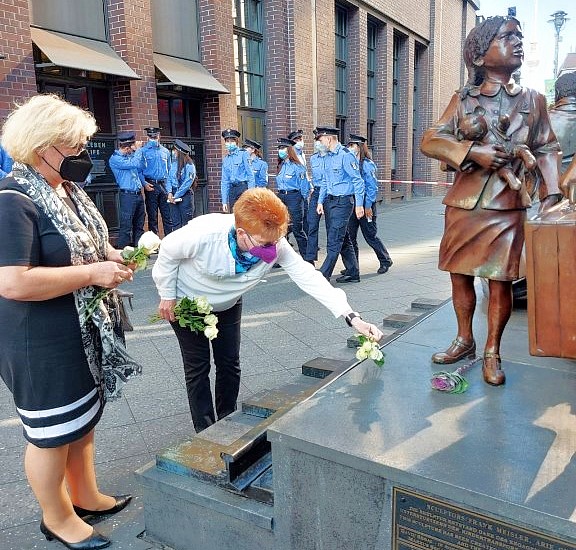 Am Gedenkort T4 im Tiergarten wurde heute der Opfer der Euthanasie-Morde in der Zeit des deutschen Faschismus gedacht. Am Bahnhof Friedrichstraße verweist eine Skulptur auf die Kindertransporte von 1938/39. Dort wurde ebenfalls heute an die Züge in den Tod erinnert, die parallel in die Todeslager der Nazis führten. Petra Pau sprach dort zu den Anwesenden. (⇒ Rede)