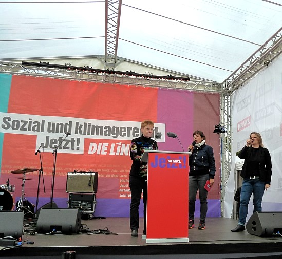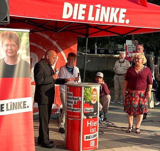Am 26. September ist in Berlin Superwahltag. Gewählt werden ein neuer Bundestag, ein neues Abgeordnetenhaus sowie neue Bezirksparlamente. Oben- drein gib es eine Volksabstimmung über die Vergesellschaftung von Wohnungen. Zu alledem gab es heute auf dem Anton-Saefkow-Platz ein Meeting der Berliner Linkspartei. Auch Petra Pau sprach.