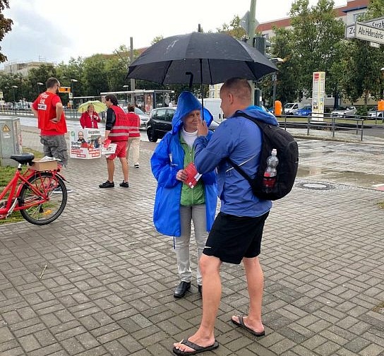 Petra Pau und Team warben heute für Stefanie, Manuela, Regina, Steffen, Björn, Julia und Kristian sowie um ihr Direktmandat und eine starke LINKE im Bundestag. Als Botschafterin des DRK Nord-Ost war sie zudem ehrenamtlich bei der Verteilung von 800 Portionen Erbsensuppe und Lebensmittelspenden auf dem Helene-Weigel-Platz tätig.