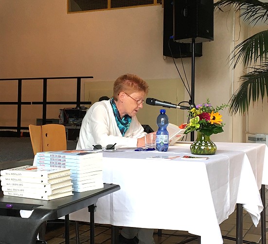 Der Tag begann für Petra Pau mit einer Lesung aus Gott hab sie selig im Restaurant Ziehbrunnen. Dabei war die linke Kandidatin zur Abgeordnetenhaus- wahl, Stefanie Wagner-Boysen. In Alt-Marzahn stand u.a. die Kurt Schwaen Ausstellung auf dem Programm. Schließlich warb Petra im Kienberg-Park mit Steffen Ostehr und Kristian Ronneburg um Wahlstimmen.