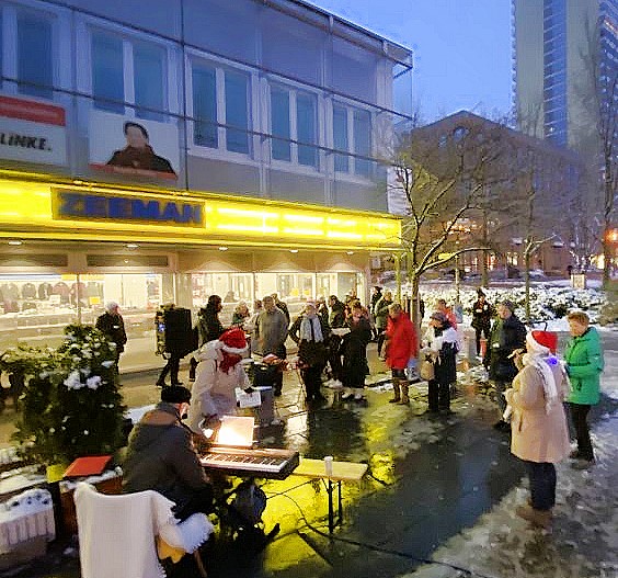 Nach der Abstimmung zum Infektionsschutzgesetz im Bundestag eilte Petra Pau in ihren Wahlkreis Marzahn-Hellersdorf. Im Stadtteilzentrum KOMPASS stand wieder eine Senioren-Adventsfeier auf dem Programm. Stimmungsvoll endete der Tag mit dem traditionellen Singen von Weihnachtsliedern unter den Fenstern des Wahlkreisbüros von Manuela Schmidt.