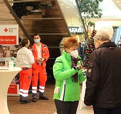 Zum 19. Mal seit Corona-Beginn verteilten Ehrenamtliche des DRK Nord-Ost auf dem Helene-Weigel-Platz Essen aus der Gulaschkanone, Lebensmittelpakete, heute auch Weihnachtsgeschenke. Petra Pau war wie immer dabei. Die vielen hundert Menschen quittierten dies oft mit einem Lächeln und guten Wünschen für die Helferinnen und Helfer.