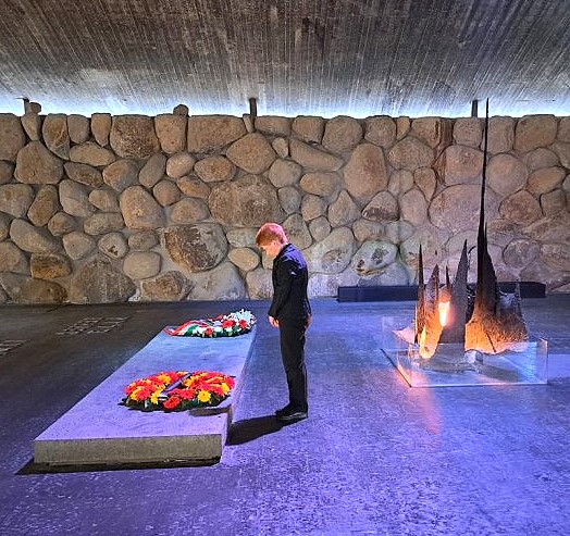 Der Tag begann mit Gesprächen in der Knesset. Danach besuchte Petra Pau Yad Vashem und legte in der Gedenkhalle ein Gebinde nieder. Ihr wurde die Ehre zuteil, sich abermals ins Gedenkbuch einzutragen. Am Nachmittag traf sie sich im Beit Ben-Yehuda-Haus in Jerusalem mit Freiwilligen der Aktion Sühnezeichen und der 101 jährigen Marianne Karmon.