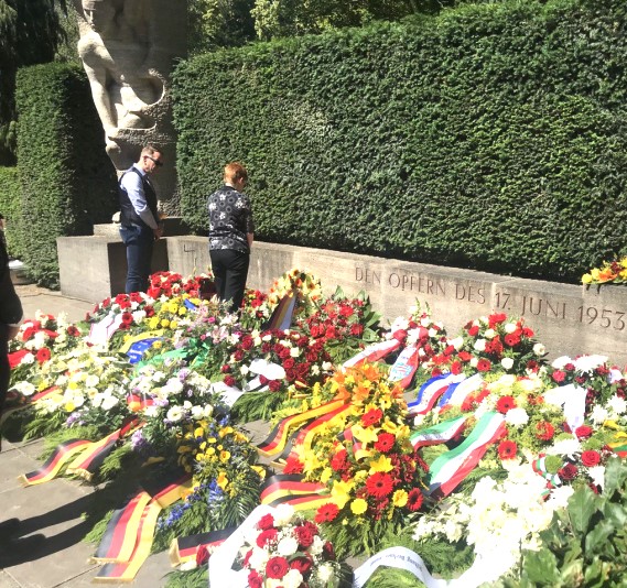 17. 06. 2022, Berlin: Auf dem Friedhof Seestraße im Wedding wurde heute des 17. Juni 1953 gedacht. Carsten Schatz, Vorsitzender der Linksfraktion im AGH, und Petra Pau nahmen als LINKE daran teil. Die Bundesministerin Clara Geywitz gedachte der damaligen Opfer und würdigte besonders den Mut der BürgerrechtlerInnen, welche 1989 die friedliche Revolution in der DDR trugen.
