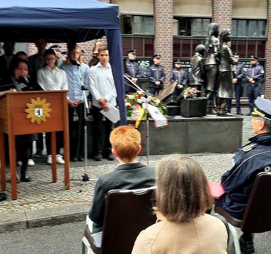 Das Mahnmal Kindertransporte am Bahnhof Friedrichstraße erinnert daran, dass 1938/39 Tausende Kinder jüdischer Familien v. a. nach England emigrieren konnten und so dem tödlichen Zugriff der Nazis entkamen, während andere in KZs verbracht und getötet wurden. Daran wurde heute wieder gedacht, Petra Pau war dabei.