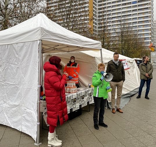 Der örtliche DRK-Verband verteilte heute auf dem Helene-Weigel-Platz wieder Suppe an Bedürftige. Petra Pau half dabei erneut. Mit Heißer Herbst sind landauf-landab Kundgebungen und Demonstrationen überschrieben, auf denen gegen die aktuelle Politik protestiert wird. Petra Pau sprach in ihrem Wahlkreis zu den Anwesenden. (zur Rede ⇒ Text / ⇒ Video)