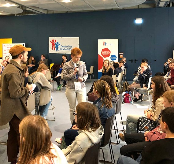 ´ Vom 1. bis 4. April stellten die Teilnehmerinnen und Teilnehmer des Kindergipfels Themen vor, die ihnen am Herzen liegen, und diskutierten heute abschließend mögliche Lösungswege mit Politikerinnen. Petra debattierte mit ihnen zum Thema Antidiskriminierung und sie verabredete sich mit Teilnehmenden aus NRW zu weiterer Zusammenarbeit.