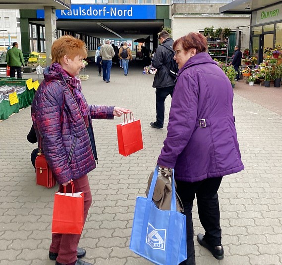 Auch in diesem Jahr fand wieder der Osterweg des Bündnisses für Demokratie und Toleranz statt. Rund 50 Menschen zogen unter dem Motto Hinsehen - Aufstehen von Kirche zu Kirche, zur Marzahner Mühle und trafen sich dann bei Speisen, Getränken und Gesprächen im Stadtteilzentrum Marzahn-Mitte. Petra Pau war, wie in den Jahren zuvor, dabei.