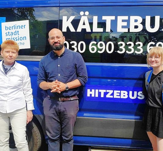 Die Stadtmission ist das ganze Jahr für Menschen da, die Hilfe brauchen. Aktuell ist der Winter-Kälte-Bus als Hitze-Bus für Menschen ohne Obdach unterwegs. Petra Pau fuhr heute eine Schicht lang mit und verteilte mit den Ehren- und Hauptamtlichen Wasser, Suppe, Sonnencreme, auch Kleidung und kam so mit vielen ins Gespräch.