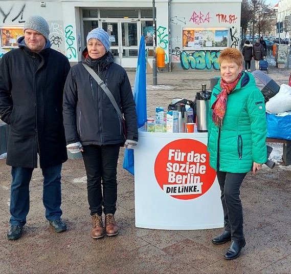 Auch heute war Petra Pau an Infoständen der Partei DIE LINKE im Nordost-Bezirk unterwegs. Dort warb sie gemeinsam mit Genossinnen und Genossen um beide Stimmen zur Wiederholungswahl zum Deutschen Bundestag am 11. Februar. Außerdem sammelten sie Kleiderspenden für die Stadtmission der evangelischen Kirche, mithin für bedürftige Menschen.