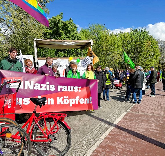 Das Bündnis für Demokratie und Toleranz des Bezirkes hatte heute zur Demonstration aufgerufen. Auch die Bezirksbürgermeisterin und Petra Pau würdigten in Grußworten den alltäglichen Einsatz für Demokratie und gegen Rechtsextremismus. Vorher besuchten sie die Kreismitgliederversammlung des DRK Nord-Ost.