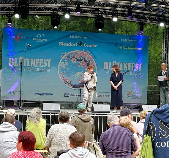 Nach fünfjähriger Pause findet an diesem Wochenende wieder das Biesdorfer Blütenfest im Schlosspark statt. Gleichzeitig wird der 45. Geburtstag der Bezirksgründung gefeiert. Petra Pau erinnerte in ihrem Grußwort auch an die große Leistung des Wohnungsbauprogramms, verbunden mit dem Bau von Schulen, Kindergärten und Kaufhallen.