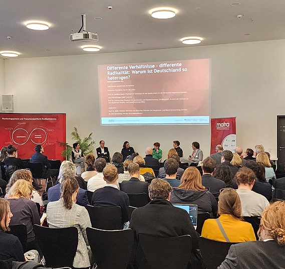 Jährlich finden MOTRA-Konferenzen, ein Verbundprojekt der zivilen Sicherheitsforschung, statt. Die MOTRA-K versteht sich als offenes Forum, um Beiträge aus der Radikalisierungsforschung und -prävention vorzustellen, Ideen auszutauschen und Personen sowie Institutionen miteinander zu vernetzen. Petra Pau diskutierte heute als praktizierende Politikerin mit.