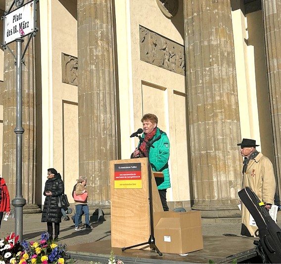 Der Platz westlich vorm Brandenburger Tor heißt 18. März und erinnert an die Revolution von 1848 und an die letzten Wahlen zur DDR-Volkskammer 1990. Beide Male ging es um mehr Demokratie. Heute fand dort wieder die jährliche Kundgebung statt, inspiriert von Volker Schröder. Petra Pau war als Vizepräsidentin des Bundestags um einen Beitrag gebeten worden. (⇒ Grußwort)