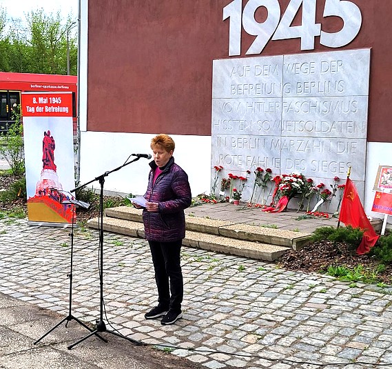 Vor 80 Jahren erreichten Soldaten der Sowjetarmee die Stadtgrenze Berlins. Daran wurde heute wieder am Haus der Befreiung und auf der Bersarin-Brücke in Marzahn gedacht. Rund 100 Bürgerinnen und Bürger nahmen daran teil. Petra Pau mahnte erinnernd, dass es aktuell um die Verteidigung von Demokratie und Menschenwürde geht.