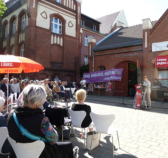 Vor 80 Jahren wurde Deutschland vom Faschismus befreit. Deshalb hatten das örtliche Bündnis für Demokratie und die örtliche LINKE heute zum Lesen gegen das Vergessen geladen. Auch Petra Pau beteiligte sich mit der Episode Erich Kästner aus ihrem Buch Gottlose Type. In ihr wird die faschistoide Partei AfD als Gefahr für Bürgerrechte und Demokratie gebrandmarkt.